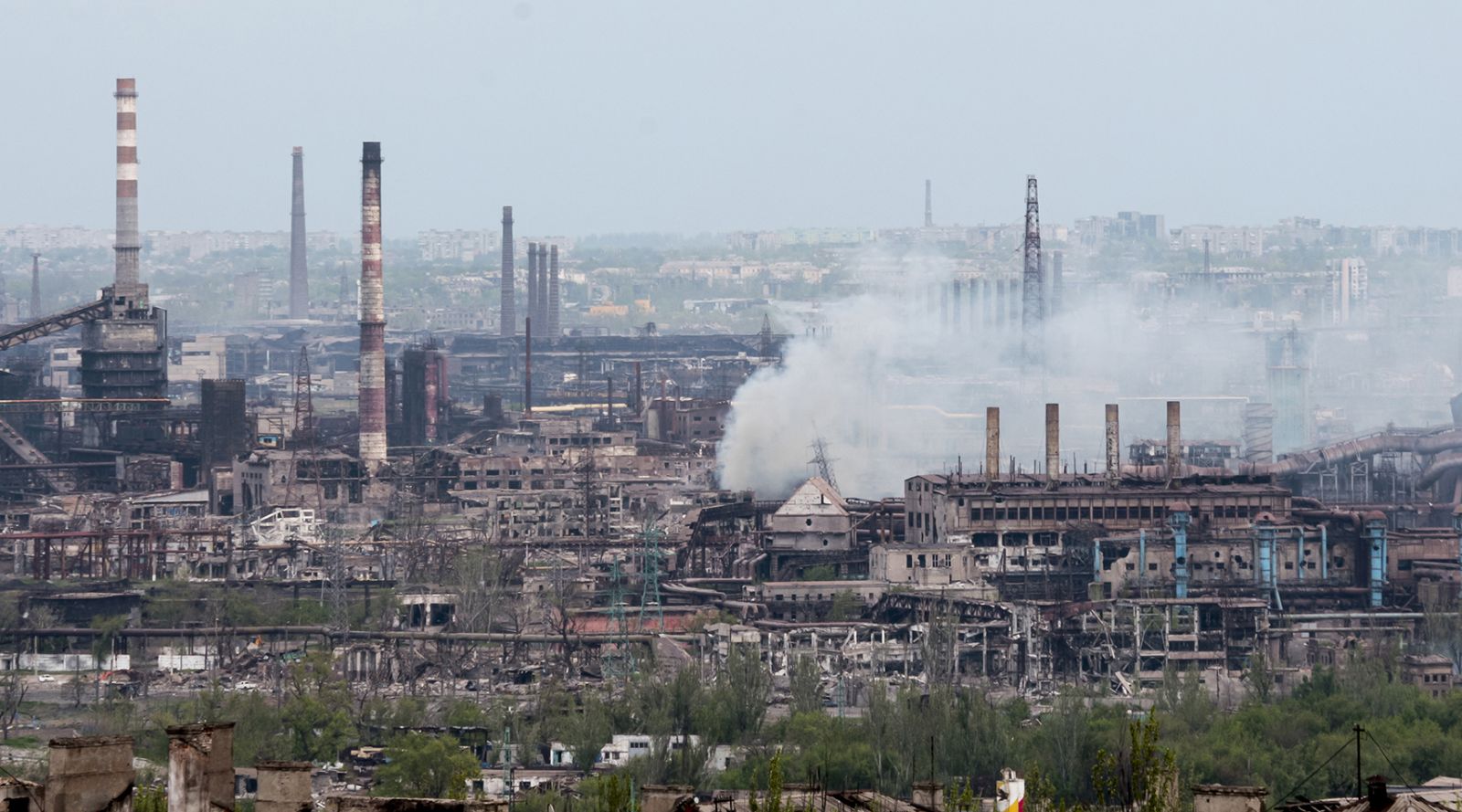 Дым поднимается над сталелитейным заводом «Азовсталь» в Мариуполе, Украина, в четверг, 5 мая. На осажденном сталелитейном заводе идут ожесточенные бои, когда российские войска пытаются захватить Мариуполь, стратегически важный портовый город. Smoke rises from the Azovstal steel plant in Mariupol, Ukraine, on Thursday, May 5. Heavy fighting is raging at the besieged steel plant as Russian forces attempt to capture Mariupol, a strategically vital port city. Photo: AP