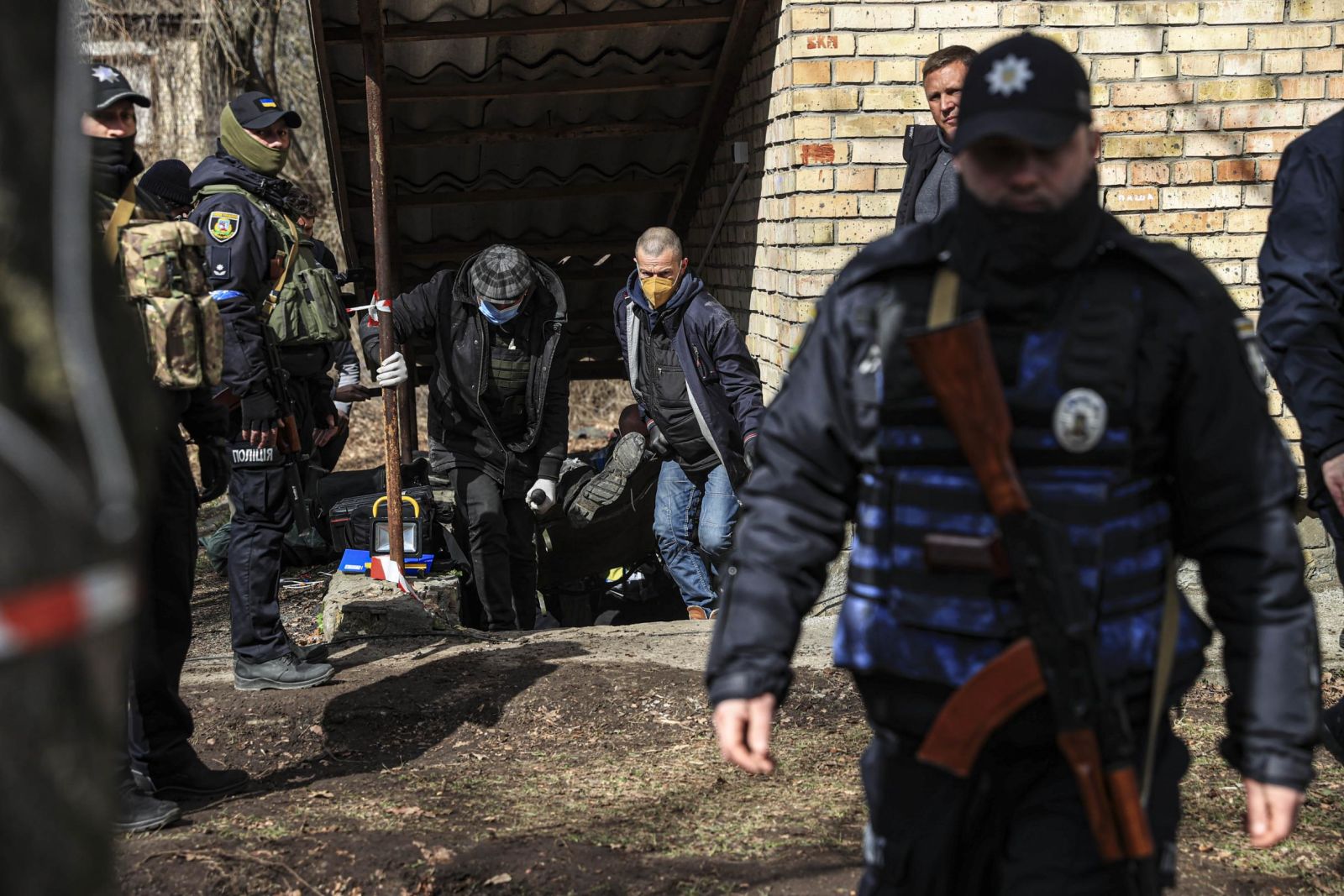 Тела мирных жителей собираются для захоронения в Буче 4 апреля. Civilian bodies are gathered to be buried in Bucha on April 4. Photo: Metin Aktas/Anadolu Agency/Getty Images