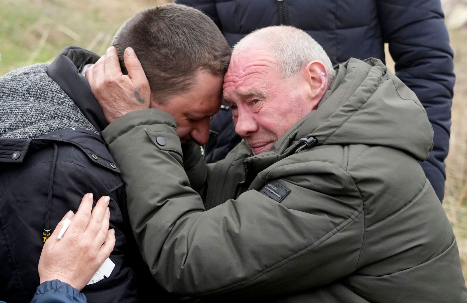 Люди плачут в пятницу, 8 апреля, у братской могилы погибших мирных жителей в Буче, Украина. People cry Friday, April 8, at the mass grave of civilians killed in Bucha, Ukraine. Photo: Efrem Lukatsky/AP